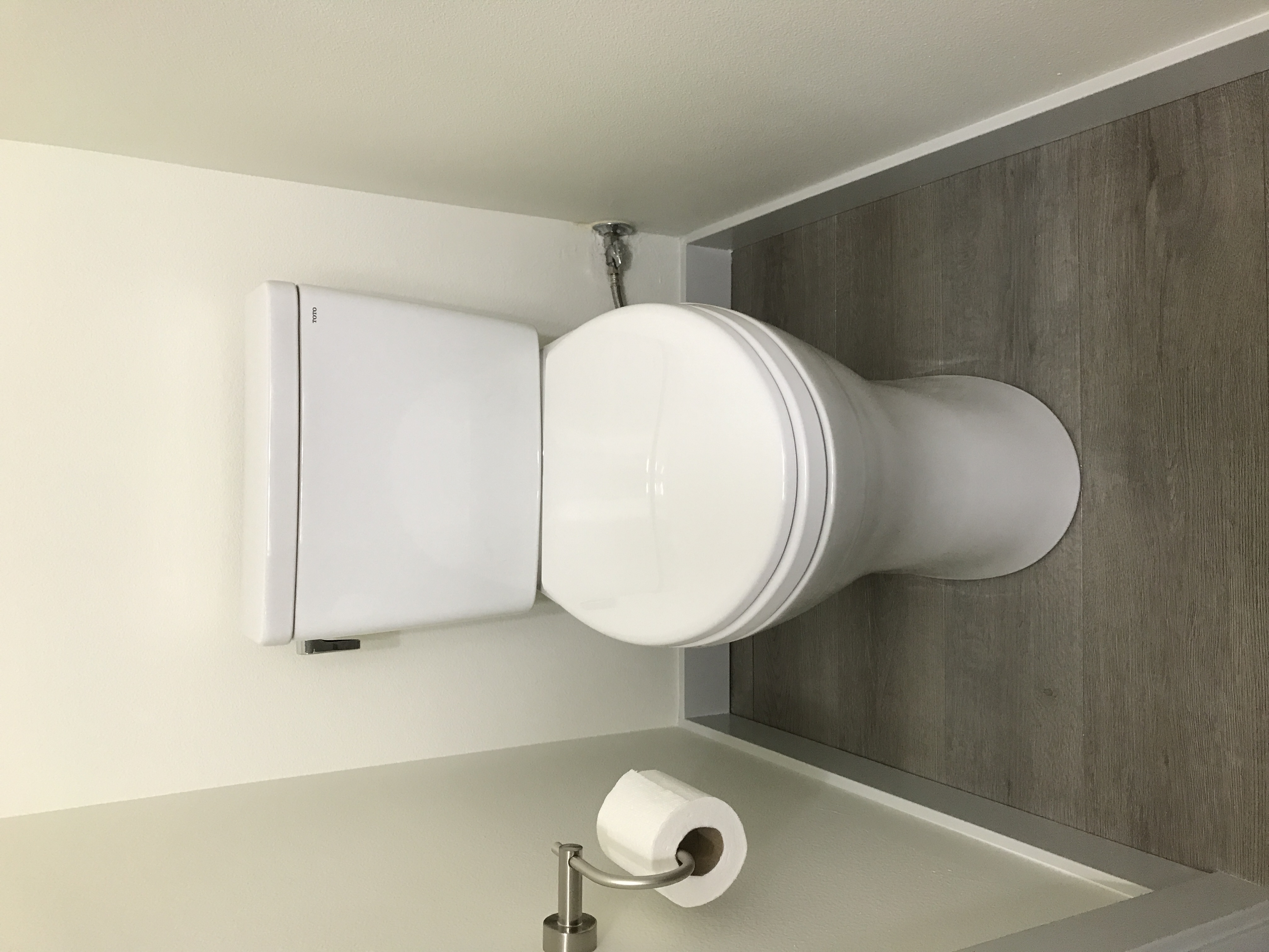 Toilet clearance left: 8.5” Right: 4.5” toilet to TP holder, 9”basin to cabinet
