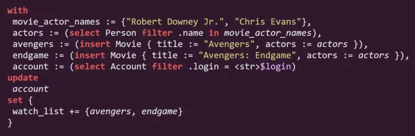 - EdgeQL has no
