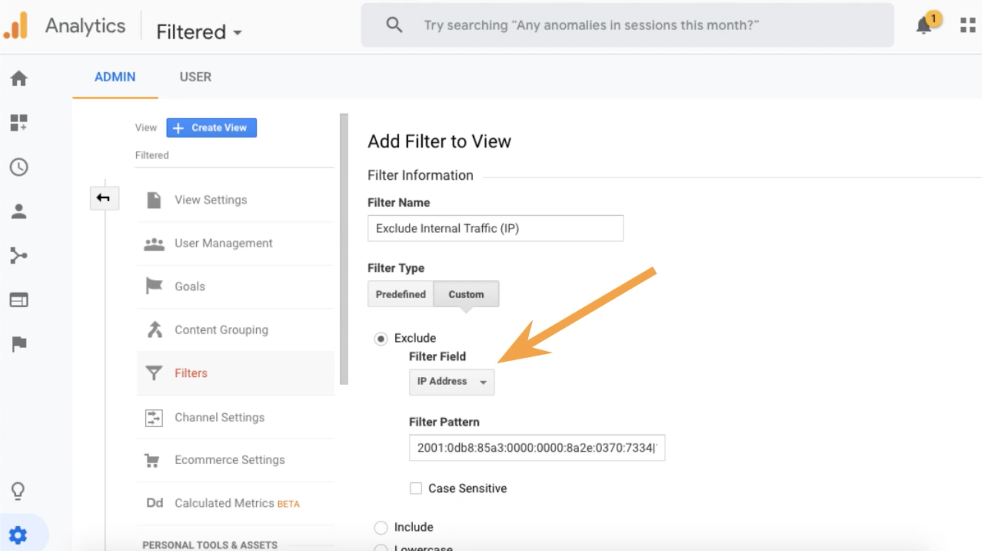 Now, apply filters to your Filtered or Test view.