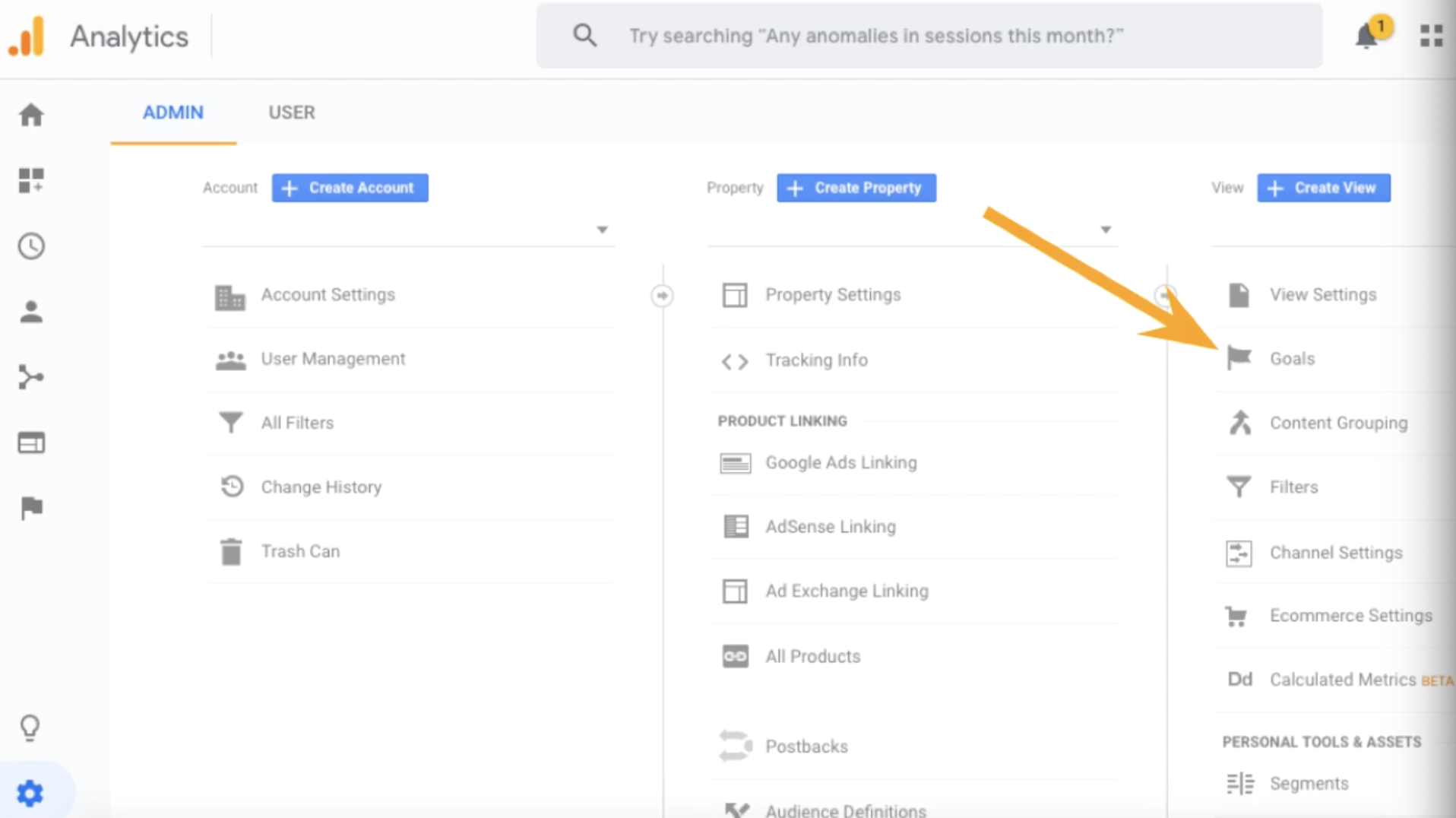 - Click Goals under the view